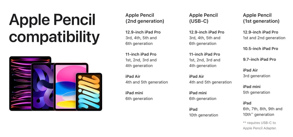 Harga Apple Pencil terbaru ditawarkan pada harga RM399, di mana RM200 lebih murah daripada generasi kedua dan RM80 lebih murah daripada generasi pertama. Rupa paras Apple Pencil terbaru ini sama seperti generasi kedua. Yang membezakan keduanya adalah di hujung atas Apple Pencil baru ini boleh ditarik untuk memperlihatkan port pengecasan USB-C di bahagian sisi rata untuk menghubungkan iPad dengan Apple Pencil atau mengecas aksesori tersebut.